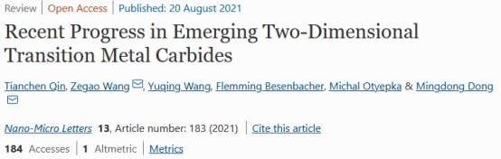 相关成果以“Recent Progress in Emerging Two-Dimensional Transition Metal Carbides” 为题发表在著名期刊《Nano-Micro Letters》上(中科院一区,川大B刊,影响因子16.419)。论文第一作者为四川大学材料学院2016级本科生秦天辰,我校王泽高特聘研究员、丹麦Aarhus University董明东教授为共同通讯作者。丹麦三院院士、中国科学院外籍院士、中国政府友谊奖获得者、丹麦Aarhus University的Flemming Besenbacher教授以及捷克Palacký University的Michal Otyepka教授参与了该成果。论文第一通讯单位为四川大学材料学院。秦天辰同学目前在中国科技大学攻读硕士学位。
