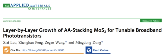 相关成果以“Layer-by-layer Growth of AA-stacking MoS2 for Tunable Broadband Phototransistors” 为题发表在著名期刊《ACS Applied Materials & Interfaces》上(中科院一区,川大B刊,影响因子9.229)。论文第一作者为四川大学材料学院2018级本科生罗夕艾,我校王泽高特聘研究员、丹麦Aarhus University董明东教授为共同通讯作者,材料学院2018级本科生彭正瀚参与了该成果。论文第一通讯单位为四川大学材料学院。