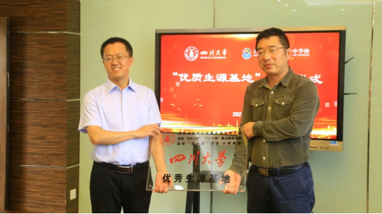 为进一步加强我校与遂宁安居育才中学的联系,吸引更多优质生源报考我校,2021年5月11日,四川大学招生办副主任廖爱民,材料科学与工程学院党委副书记张晓满教授,教学名师朱建国教授,招生专员余艳丽和王静老师一行五人走进遂宁安居育才中学进行本科招生宣讲与咨询,并授予遂宁安居育才中学“优秀生源基地”称号。