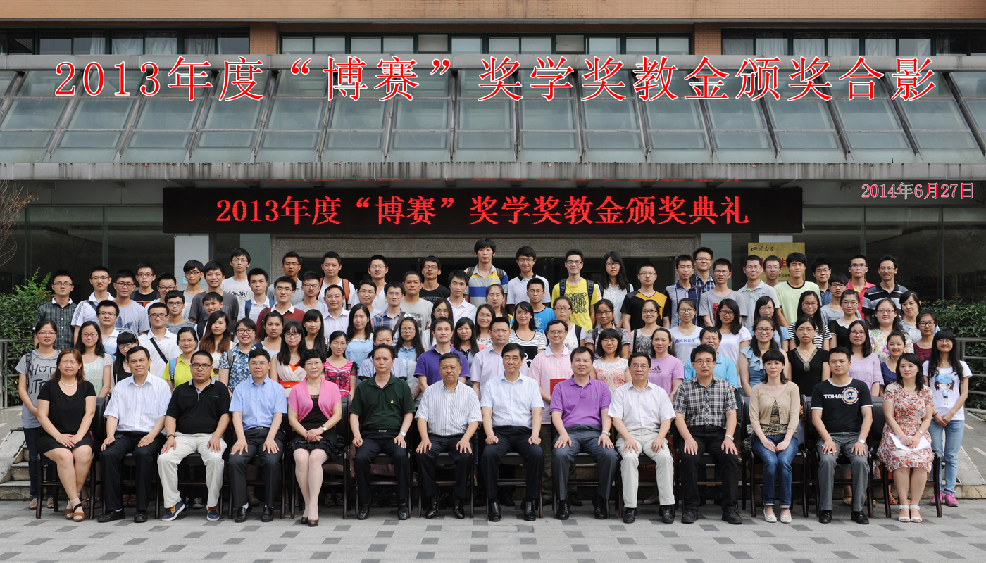 2014年6月27日下午3:30,在四川大学研究生院3-231室,四川大学举行了2013年度“博赛”奖(助)学、奖教金颁奖大会。重庆博赛矿业(集团)公司董事长、我校杰出校友袁志伦先生、重庆博赛矿业(集团)公司副总经理、校友陈国友先生、四川大学党委副书记李向成教授、党委研究生工作部部长李栓久教授,党委学生工作部张俊磊副部长、对外联络办公室廖海燕副主任、材料科学与工程学院院长尹光福教授、党委书记朱建国教授、副院长刘颖教授等学院领导以及博赛集团其他高层领导出席了颁奖大会。一百二十余名获奖教师和学生参加了颁奖大会,颁奖大会由学院院长尹光福教授主持。