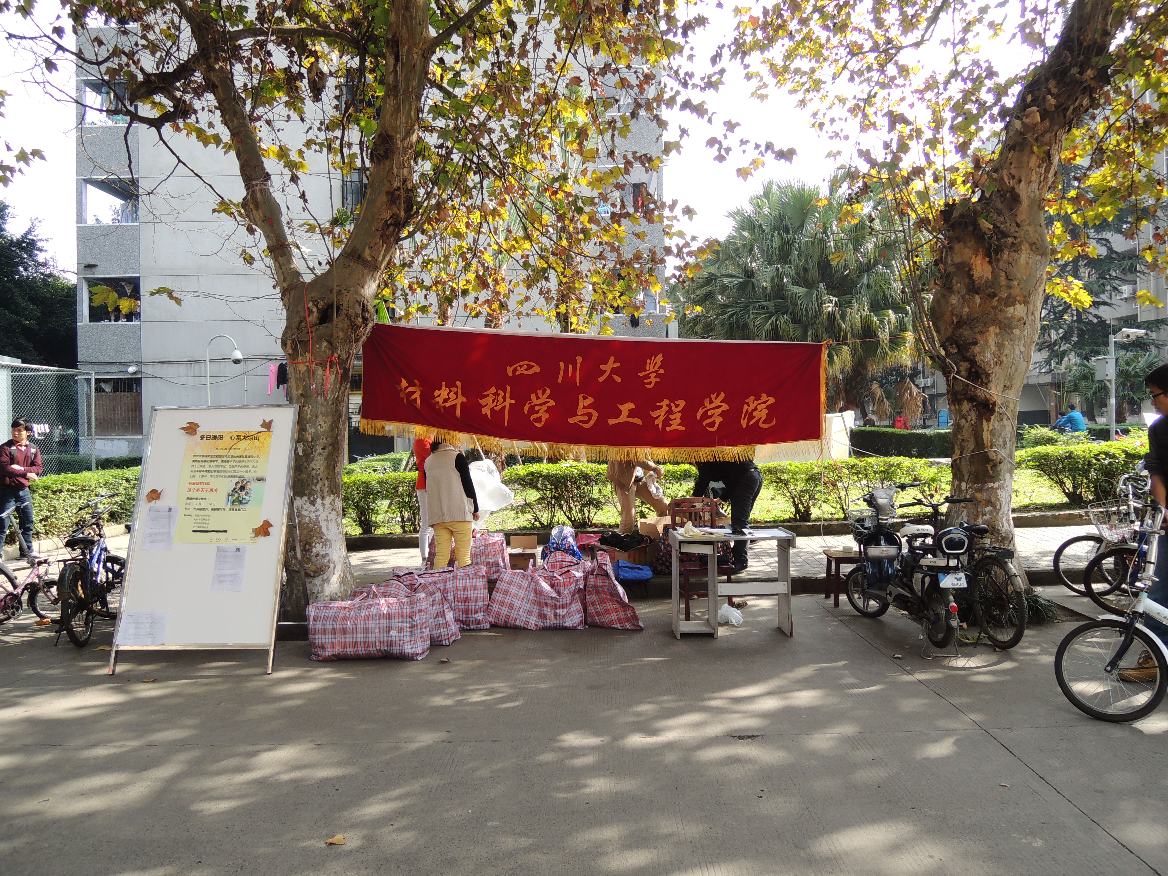 为了响应四川大学第十六届研究生支教团成员的号召,帮助大凉山美姑县城关小学,民族初级中学和美姑县中学的贫困学生度过一个温暖的冬天。四川大学材料学院、制造学院、化工学院、建环学院于2014年11月13—14日开展了了“冬日暖阳——心系大凉山”冬衣募捐活动。