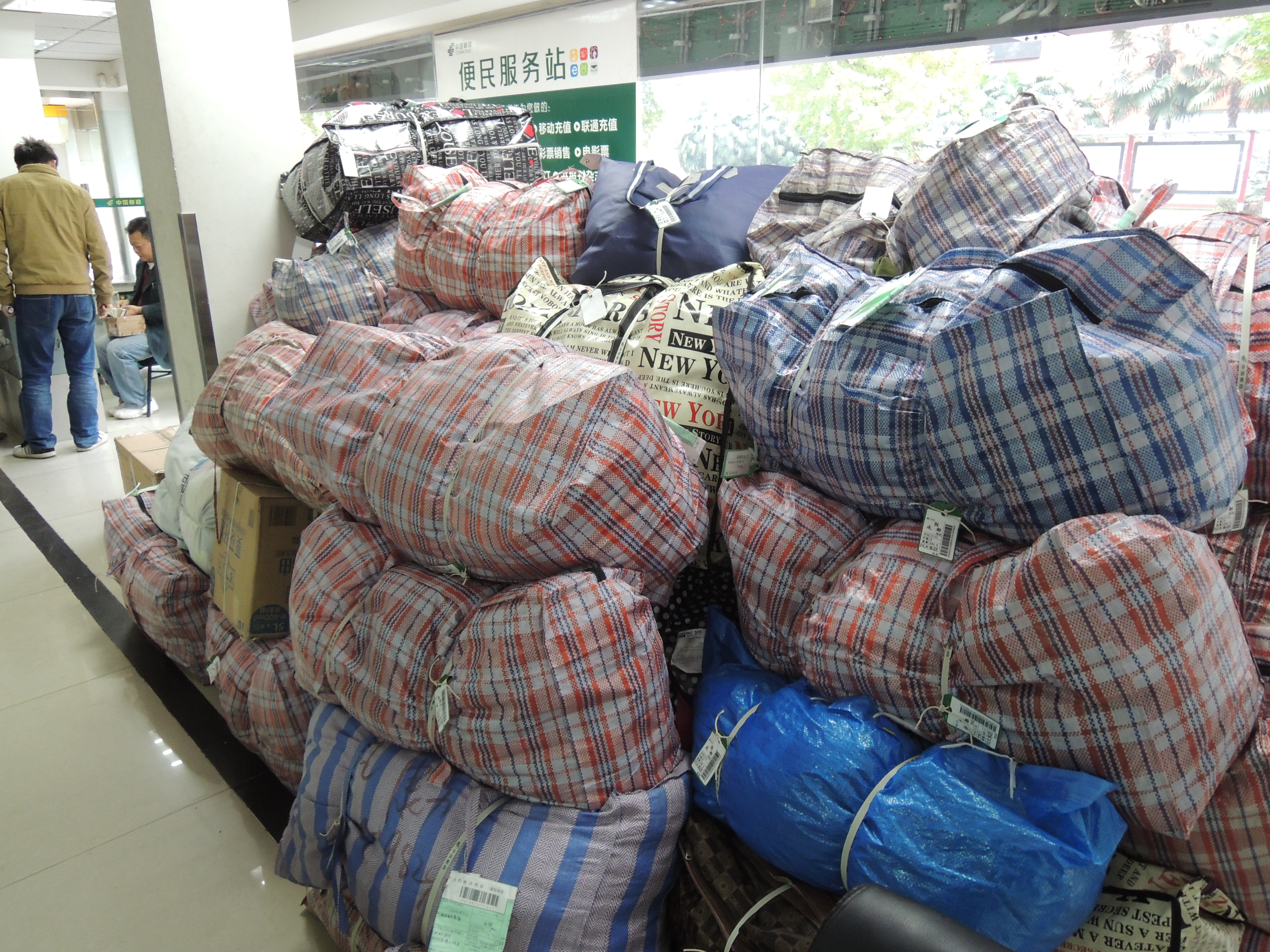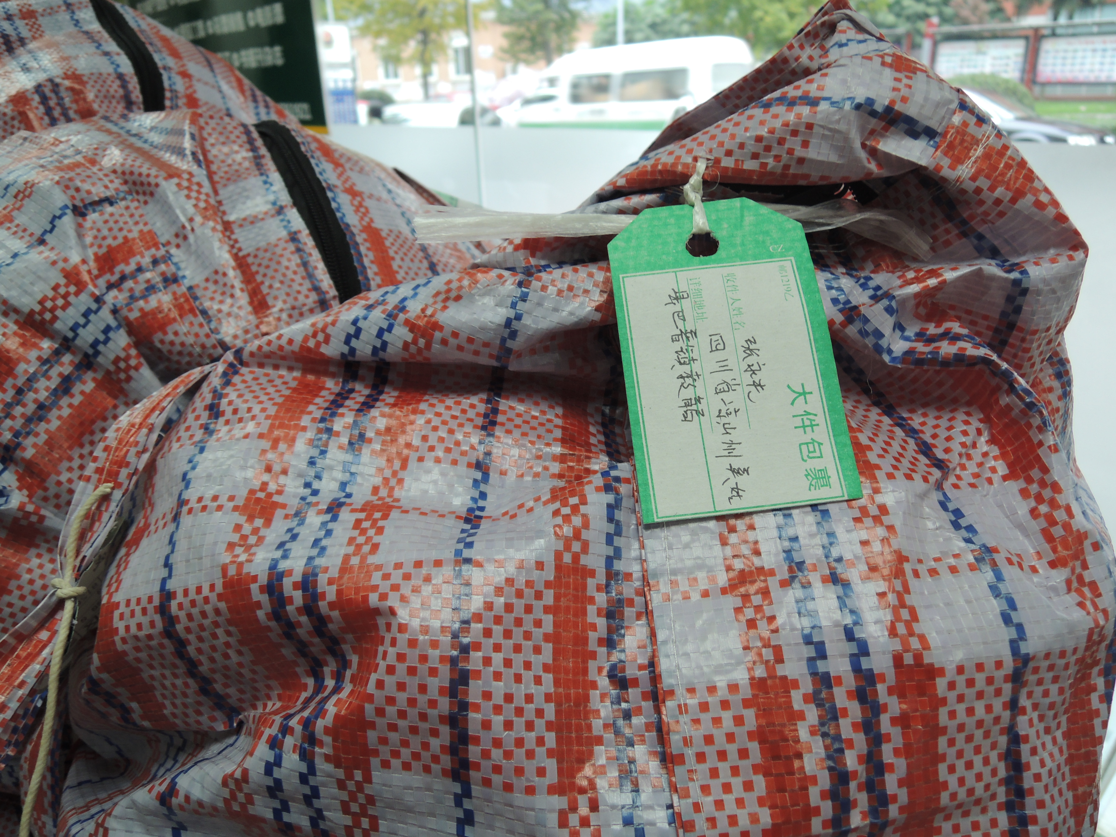 每天到了当日募捐活动结束的时候,仍有源源不断的同学将衣服给我们提过来。经过两日的募捐,我们收到的衣服数量远远超过了我们的预算,最后,我们一共整理出65个编织袋的募捐衣服。这么多的衣服,搬运不轻松,邮费也不菲,但是一想到能为美姑县的孩子们带来一些温暖,还有什么不能克服的呢!在联系好邮局以后,18日一大早我们志愿者们便开始将衣物搬运至邮局准备寄送,直到下午一点,寄送的工作才顺利完成,这里特别要感谢我们的志愿者们,因为很多志愿者连午饭都没来得及吃,一直都在现场帮忙打包和搬运。