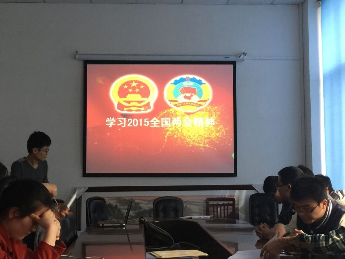 2015年3月5日,李克强总理发表了《2015年国务院政府工作报告》,预示着第十二届全国人民代表大会第三次会议正式拉开了帷幕。为认真领会“两会精神”,提高党员同志的政治修养和素质。2015年3月27日,2012级材料科学与工程学院党支部在学院会议室对“两会精神”进行学习,支部全体31名党员出席了本次会议。