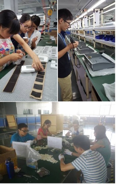 生产部:从最基本的一些零件组装成一个完整的产品再对其进行包装等多道工序都是在生产部完成的。同学们亲自参与到一部分环节中,锻炼了自己的实际操作能力。
