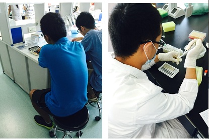 图1. 同学们正在工厂质保部精心进行酶标板的质量检测