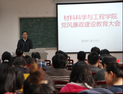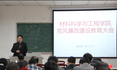 2016年4月1日下午,材料科学与工程学院在学院209会议室召开了2016年度党风廉政建设教育大会,学院全体教职工参加了会议。会议由学院院长尹光福教授主持。