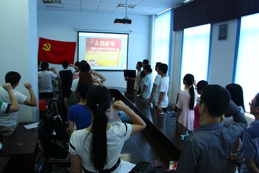 2016年7月1日中午12:30在材料科学与工程学院会议室,学院博士支部和2015级硕士支部联合开展“重温入党志愿、重温入党誓词”主题党日活动如期举行。博士支部党支部书记韩纪梅老师、2015硕士支部书记王娇老师和两个支部党员一起回顾了中国共产党自1921年建党至今已经走过的95周年的历史,95年来,中国共产党领导全国各族人民取得了革命、建设和改革事业的辉煌成就。中国共产党90多年的发展实践证明,办好中国的事情,关键在党,重点在党。以“党要管党、从严治党”为重要内容的党的建设是我们党取得政权的重要法宝,是我们取得改革开放巨大成就的重要前提,也是我们实现中华民族伟大复兴“中国梦”的坚强保证。党的十八大以来,习近平总书记发表了一系列重要讲话,提出了许多新思想、新观点、新论断,体现了以习近平同志为总书记的党中央治国理政的理论创新,丰富和发展了中国特色社会主义理论体系,指引着党和国家未来的发展方向。现在我国广大人民群众正走在实现中华民族伟大复兴的中国梦的征程上,全体研究生党员一定要努力学习科学文化知识,积极投身科研工作,为建设一流大学、一流学科、建设创新性国家做出党员应有的贡献!全体党员举起右拳、面向党旗重温入党誓词!宣誓之后在举行的座谈会上,在场党员联系自身工作实际,围绕“入党为什么、在党干什么、给党留什么”纷纷发言,增强爱党信党护党的思想和行动自觉。