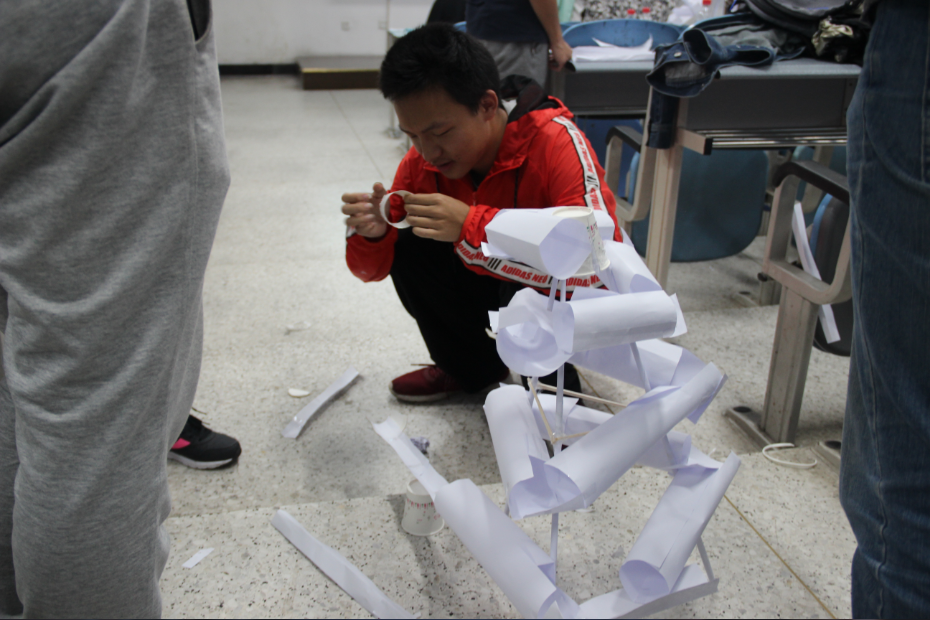 顾名思义,“小球,请滚吧”便是让一个小球滚动起来的特色趣味活动。参赛选手以小组为单位,在有限的材料中找到自己所需,并在有限的时间内设计出特色轨道让小球能够通过。当然,小球不仅要通过,滚动的持续时间还得长,为此各参赛选手妙招横出,现场气氛激动人心。