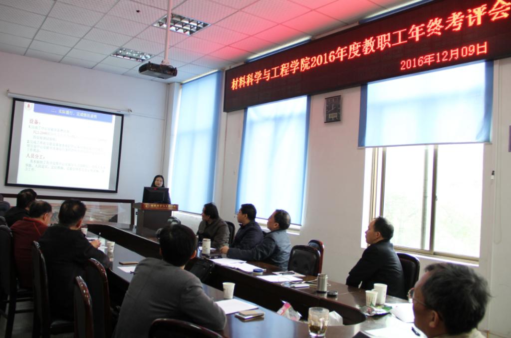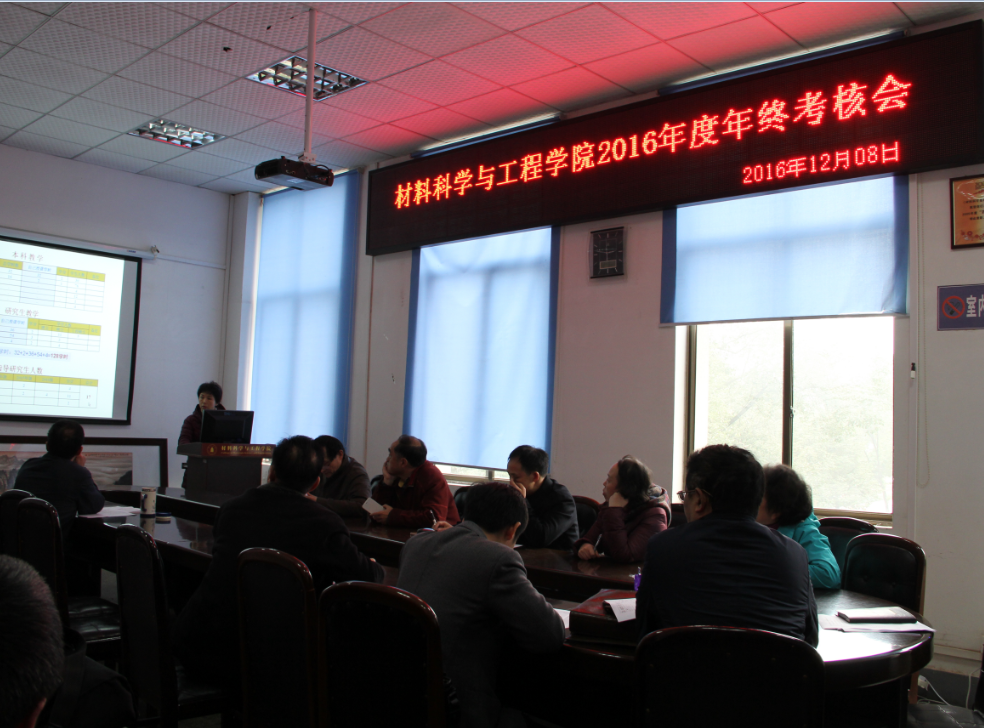 2016年12月8日-12月9日,材料科学与工程学院召开了2016年教职工年终考核会。会议分三个半天进行,12月8日下午进行教授的集中考核,12月9日上午进行行政、思政和中心实验室的考核,12月9日下午进行各系副高及以下教职工的考核和学院的集中评优考核。