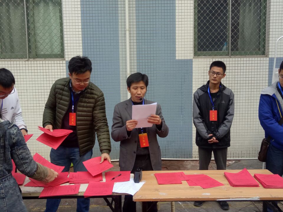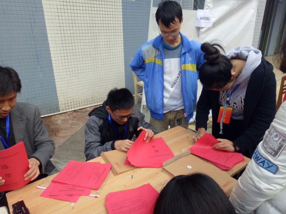 在所有人都填写好选票后,开始按照主持人,监票人,计票人和工作人员先投票,然后选举领导小组成员投票,最后其他人员在工作人员的引领下依次投票的顺序进行投票。投票结束后,在监票人的监督下,计票人打开票箱,对区人大代表选票进行清票。清票结束后,由唐世红书记宣布本选举站人大代表投票结果,承认选举有效。最后将区人大代表选票加封,由监票人,计票人和工作人员护送到艺术学院一楼A1-11教室进行计票。此次选举活动顺利结束。