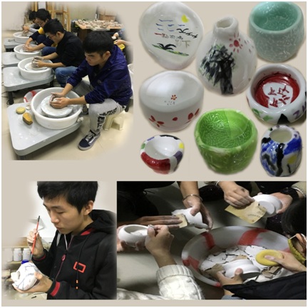 中国人在科学技术上的成果以及对美的追求和塑造,通过陶瓷的制作体现出来,并形成了各时代非常典型的技术和艺术特征。为此无机材料系结合基础实验课程大纲,为无机非金属材料专业、生物医学工程专业同学开设了日用陶瓷的制备实验,这是一门最受学生欢迎的实验课,每个学生自选一种手工成型方法,亲手完成一件陶瓷作品。今年又增开了彩绘和上釉工艺,学生可以选择釉下彩绘或单色釉对自己的作品进行装饰,炉门一开,一个个美轮美奂的作品展现在眼前,或素雅清新,充满生机,或活泼灵动,趣味纷呈。