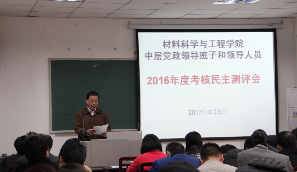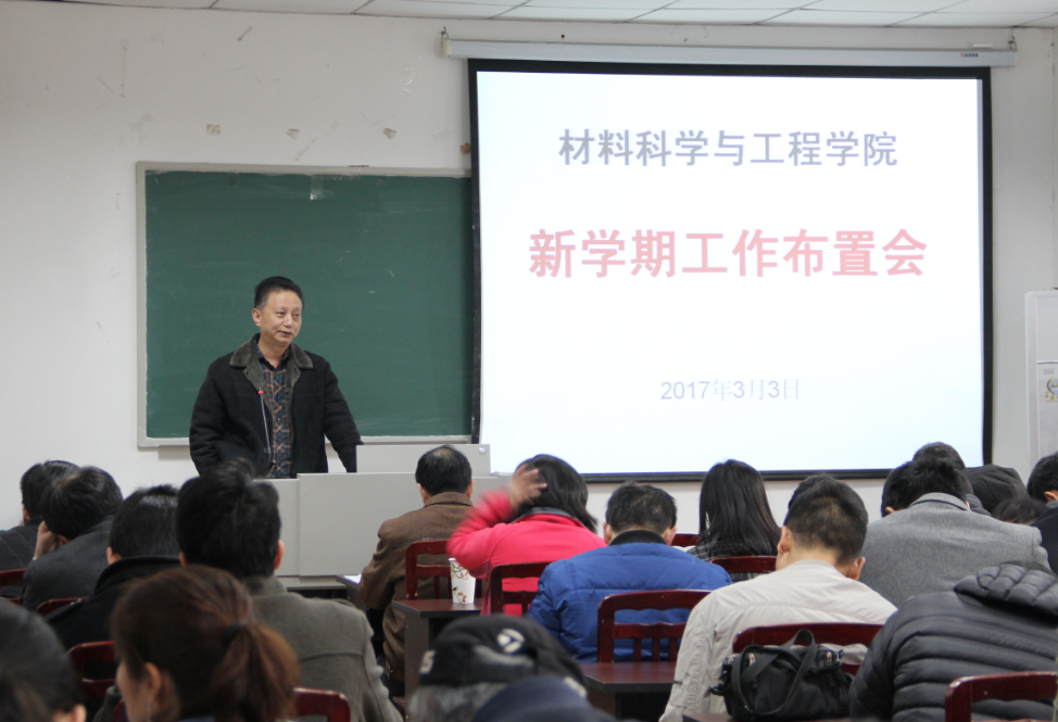 2017年3月3日下午,材料科学与工程学院在第一理科楼209教室召开新学期工作布置会暨中层领导班子和成员民主测评会。学院全体教职工参加了大会。会议由学院党委书记朱建国教授主持。