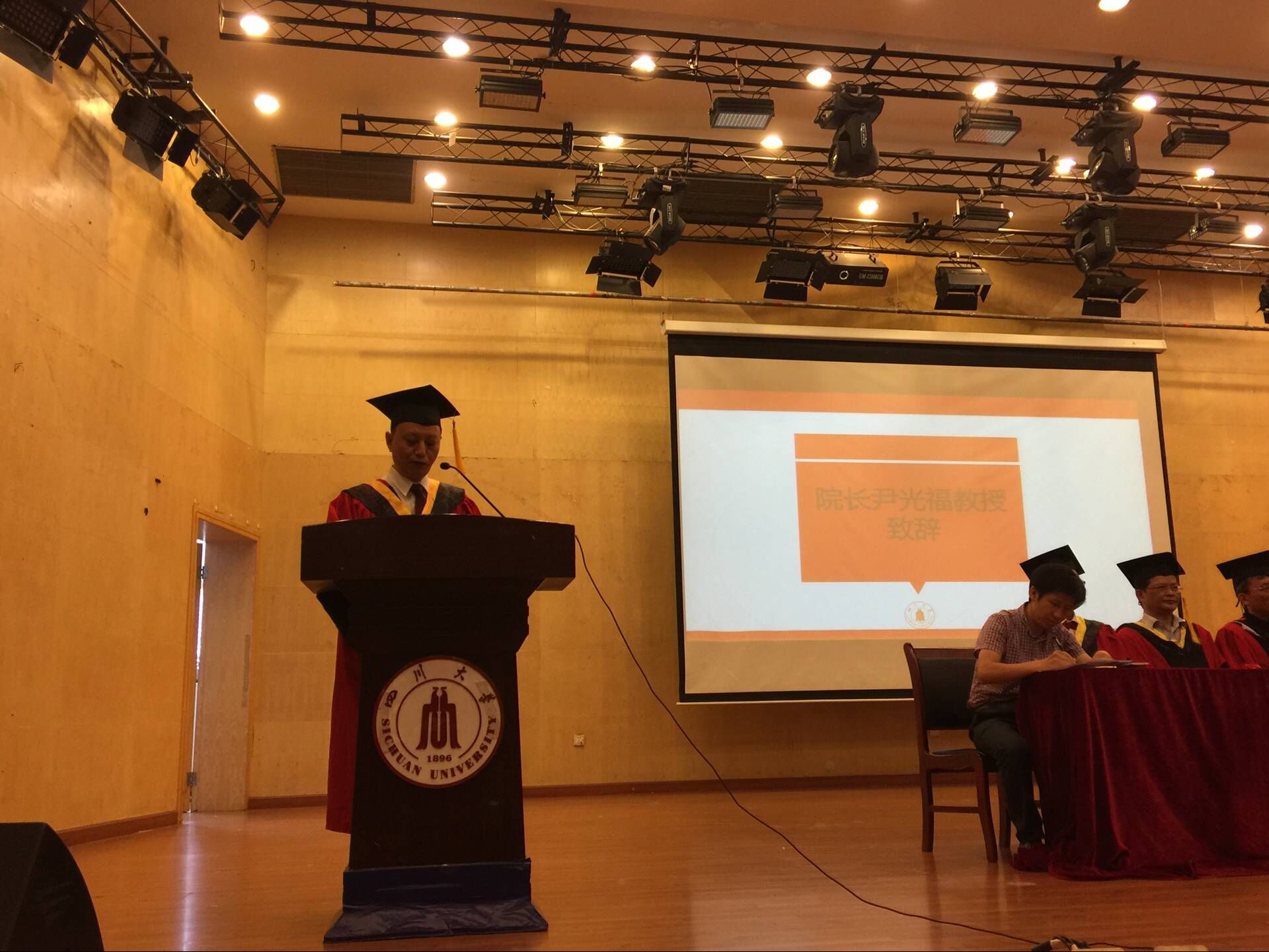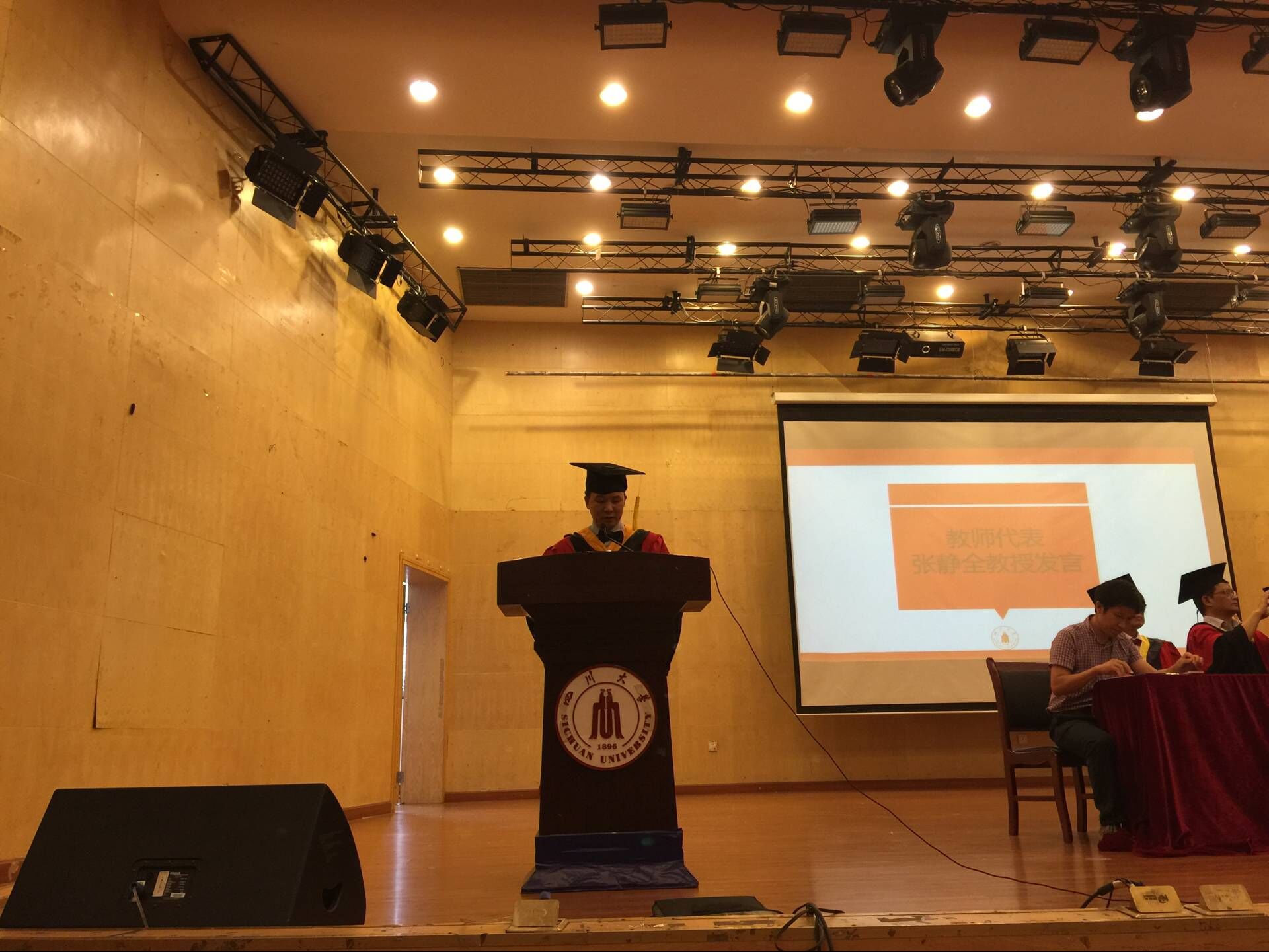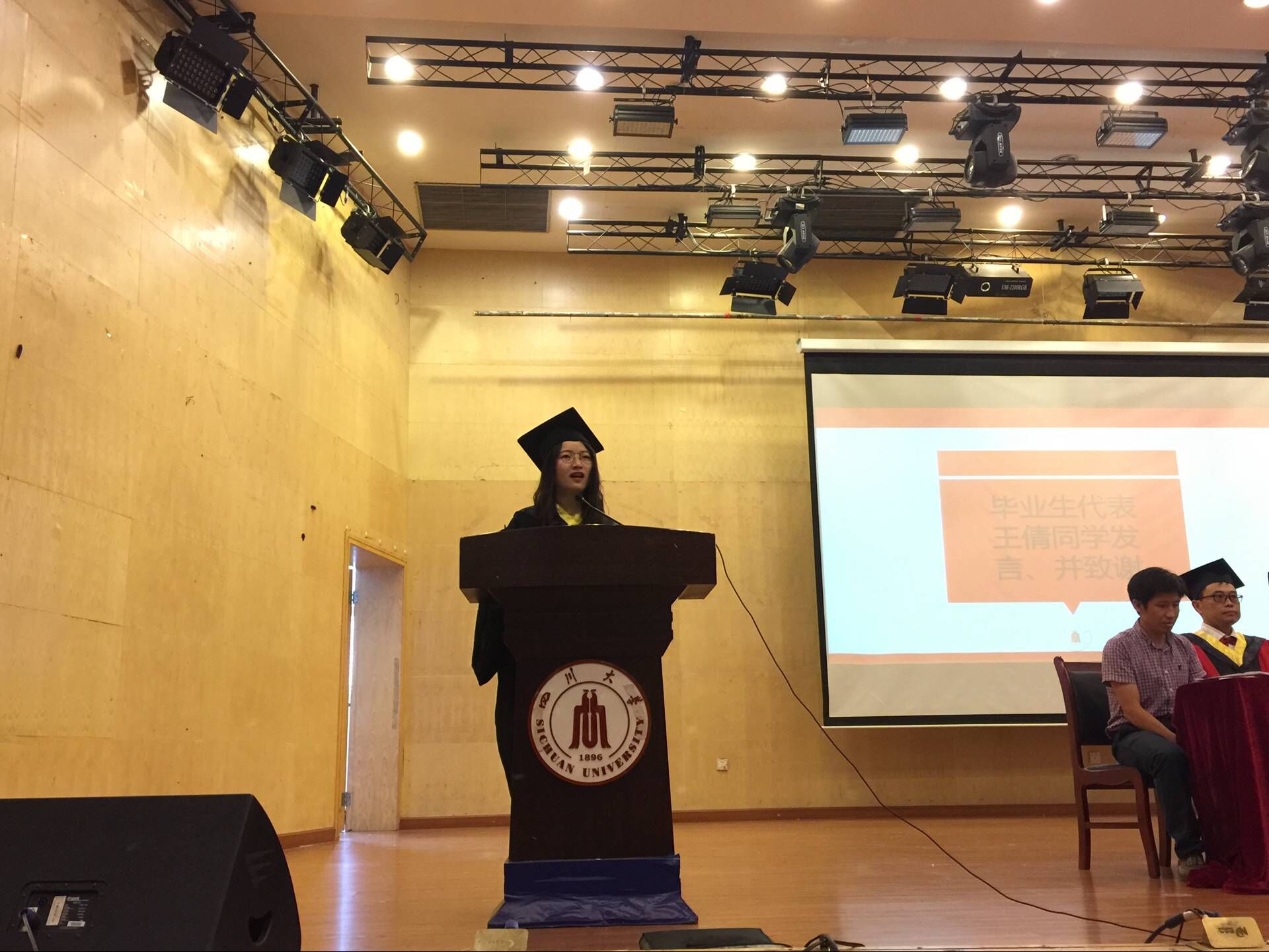 2017年6月12日上午8:20,在文华活动中心二楼音乐演播厅举行了2017届材料科学与工程学院毕业典礼。材料科学与工程学院院长尹光福教授、党委书记朱建国教授、副院长刘颖教授、工会主席周大利教授、副院长孙小松教授、党委副书记唐世红老师、新能源系主任陈云贵教授、材料科学系主任张静全教授、无机生医系党支部书记黄忠兵教授等诸位领导、老师,2017届博士、硕士以及学士共356名毕业生齐聚一堂。典礼由材料科学与工程学院党委副书记唐世红老师主持。院长尹光福教授发表了满怀深意的讲话,向所有毕业生表达了殷切的期望和浓浓的祝福。党委书记朱建国教授宣读了2017届省级校级优秀毕业生优秀学生干部的表彰决定,向2017届的优秀毕业生们表示了真挚的祝贺。教师代表张静全教授代表全体教职工向材料学院全体毕业生表达了深切的祝愿。随后2013级本科毕业生王倩同学代表全体毕业生发表了主旨为“知识与担当”的演讲。最后是毕业典礼授位仪式,老师们将毕业证书和学位证书一一交到同学们手中,并对同学们表示祝贺。2017届毕业典礼在同学们的高兴与不舍中落下了帷幕。