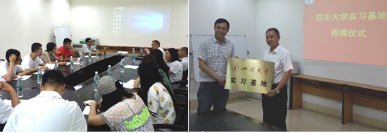 会议开始前还举行了授牌仪式,实习的带队老师代表材料学院生物医学工程专业授予四川南格尔生物科技有限公司为“四川大学实习基地”荣誉称号,以感谢南格尔公司10多年长期对材料学院生医专业各种生产实习的支持,并进一步加强四川大学生物医学工作专业与南格尔公司深度实践合作。会议结束后,刘总经理又亲自带领我们8位同学参观了公司的常温血小板保存袋、去白细胞一次性采血袋及相关配套医疗设备的展示以及其功能介绍;之后他还带领我们参观了公司产品的环氧乙烷大型灭菌车间。