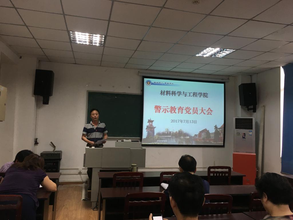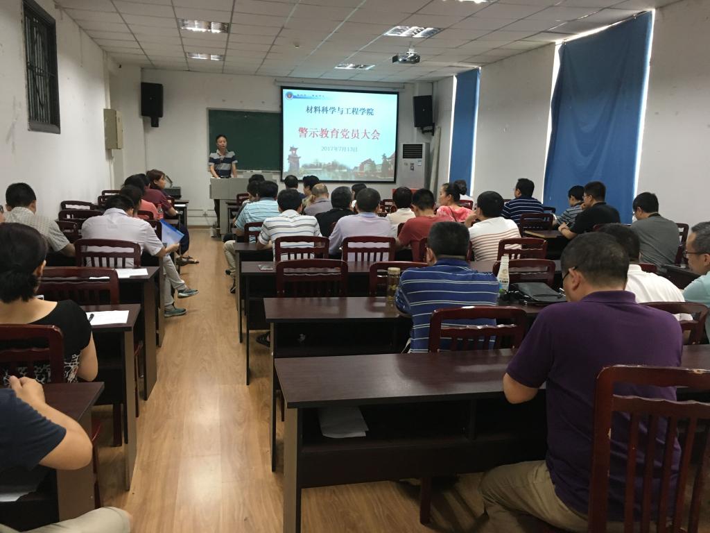 按照校党委《关于汲取违纪违法案例深刻教训进一步加强警示教育的通知》文件要求,材料科学与工程学院于2017年7月13日下午2:30,在第一理科楼206召开了警示教育党员大会。学院全体党员参加了此次会议,会议由院党委书记尹光福教授主持。