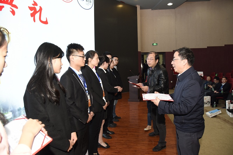 选手展示完毕之后,大赛评委会进行了一个简短的商议会。随后,颁奖典礼正式开始,由第一届四川高校大学生材料设计大赛专家委员会主任、四川大学材料科学与工程学院党委书记尹光福教授宣布最终结果。其中,来自四川大学余锦月组的《基于主-客体超分子自组装的杀菌-排菌双功能表面生物材料》,西南交通大学肖希组的《血管支架表面改性设计——基于贻贝灵感化学策略的 NO 催化释放涂层构建》,四川大学尚兴港组的《基于三硫代酯的疏水缔合水凝胶制备及性能研究》获得一等奖,四川大学的赵刚组、西南交通大学的王晶组、成都工业学院的毛冬丽组,四川师范大学的李越组等7支队伍获得二等奖,其余十五支队伍获得了三等奖。各项目指导老师也获得了优秀指导教师奖。尹光福教授表示,此次大赛旨在为全省高校材料类专业及相关专业大学生提供学习交流的机会,大家提出的方案或许有很多不完善的地方,但同学们的勤奋努力和勇于创新的意识要继续保持。