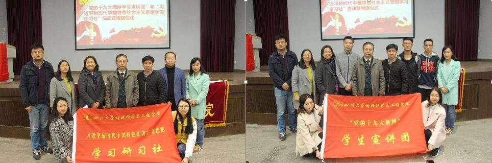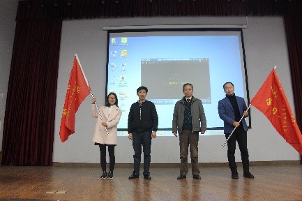 在庄严地乐曲声中,我院党委书记郑重地将鲜红的旗帜交到学生宣讲团团长和研习社社长手里,宣告“党的十九大精神学生宣讲团”和“习近平新时代中国特色社会主义思想学习研习社”正式启动。