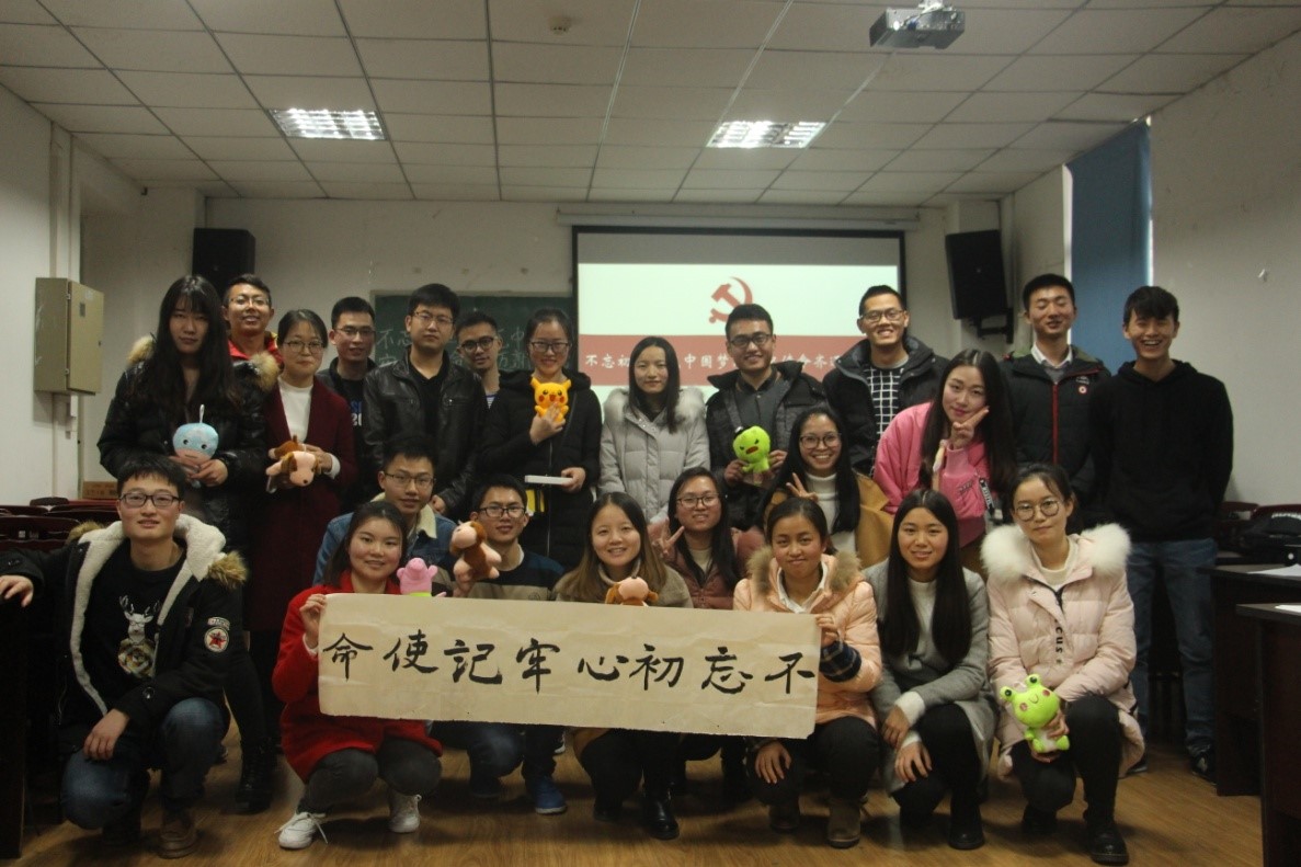 最后是我们党员的心路历程分享,由刘恩佐同志为大家讲述他在四川凉山甘洛县支教一年的经历。“情系彝乡,圆梦凉山”,上学是多少贫苦家庭孩子的梦想,作为支教老师的他们不仅给孩子们带去了知识和学问,还成为这些孩子求学路上的一盏明灯。教育是百年大计,我们党员应该发挥积极性,为我国建设教育强国贡献自己的一份力量。全部活动以全体党员的合照结束,这次严肃而又活泼的主题活动给我们党员留下了深刻的印象。