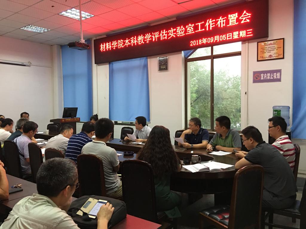 2018年9月5日上午材料科学与工程学院在学院会议室召开了迎接教育部本科教学评估我院实验室有关工作布置会。本次会议旨在传达学校设备处本科教学评估实验室工作布置会会议精神,安排落实我院实验室建设、管理有关具体事宜,力争以最好的面貌顺利通过教育部本科教学评估。会议由主管实验室安全与设备的副院长吴家刚教授、教学副院长林江莉副教授主持,我院全体实验室主任、部分实验课任课老师参会。