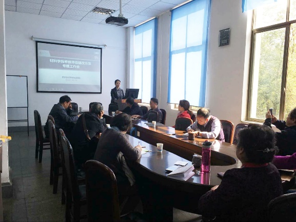 10月15日下午2:00,材料科学与工程学院本科审核评估整改专题工作会在第一理科楼材料学院会议室召开,会议由教学副院长林江莉主持,党委副书记张晓满,工会主席武莉莉,系主任张静全、芶立、张云、叶金文,校督导组专家朱建国,院教学督导组专家郑文琛、刘荣生、赵北君、周大利,本科教务秘书李英以及本科教务老师陈艳雯、芶倩参加了此次会议。