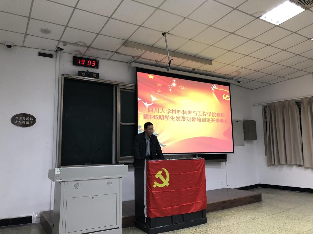 四川大学材料科学与工程学院党校第145期学生发展对象培训班第一次党校授课在热烈的掌声中结束。范老师深入浅出、旁征博引的讲解让学员们对党的历史、性质、宗旨等有了更深刻的理解,也更坚定了学员们的入党决心。