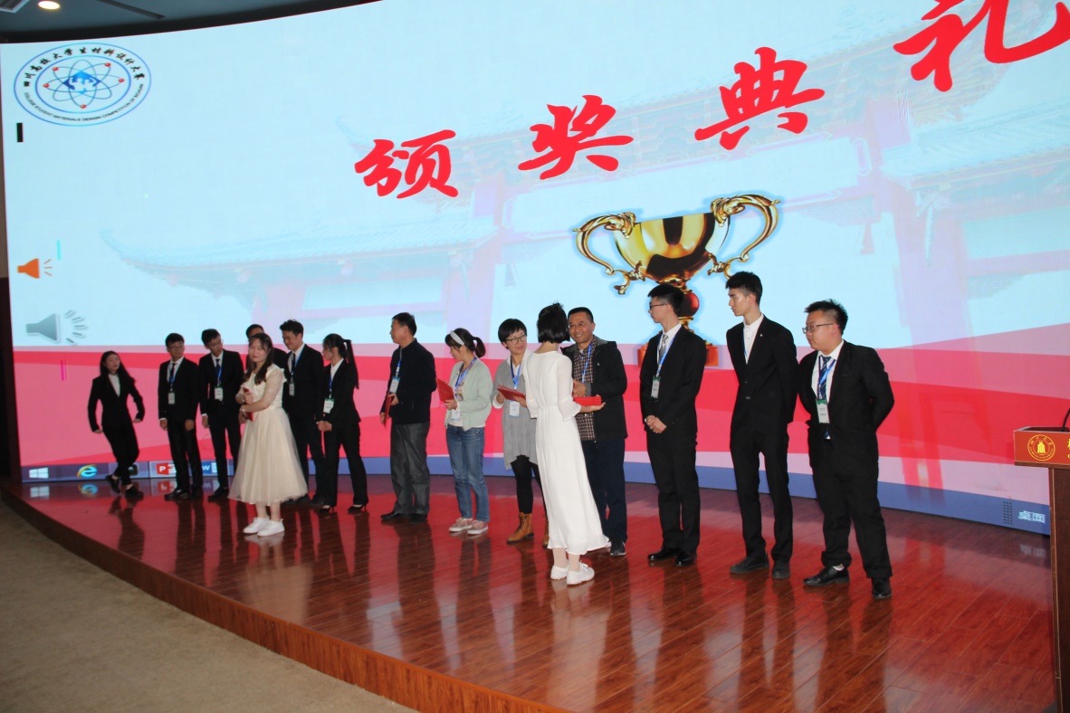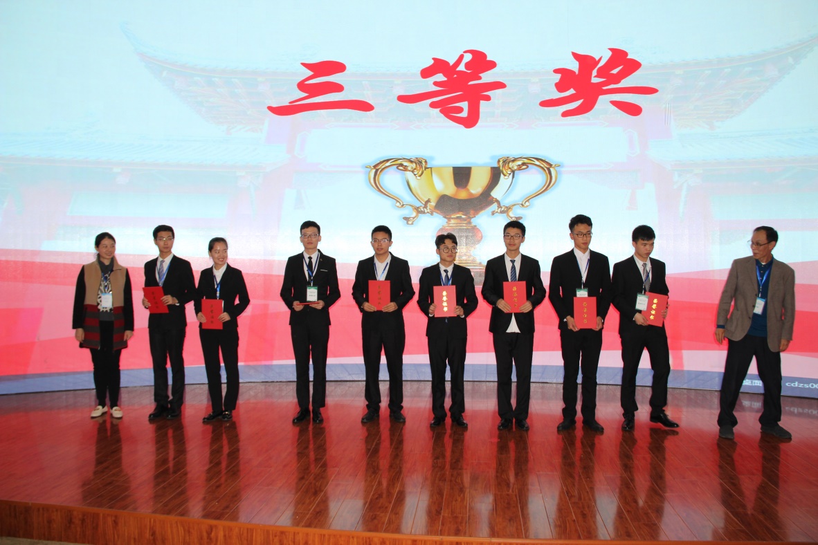 在紧张的统分阶段,现场播放了四川大学的宣传片。经过评委们的一致评定,由评审委员会主席尹光福教授宣读获奖名单,大赛共产生了3名优秀指导老师、3个一等奖、6个二等奖、8个三等奖以及11个优胜奖。来自四川大学金泓宇团队、西南交通大学周仲毅团队以及西华大学黄敬鉥团队获得本次大赛最高奖项一等奖。随后,评委们为获奖选手颁奖,鼓励选手们在今后的学习中追求卓越,创新进取。