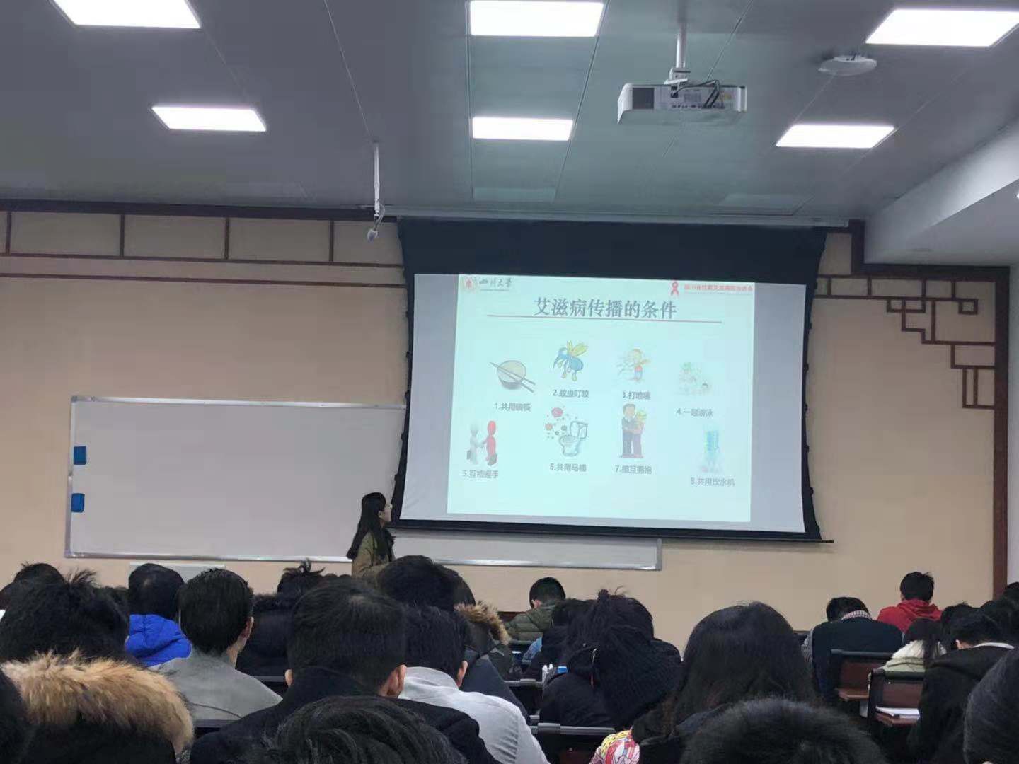 为了普及艾滋病防治知识,增强大学生防控艾滋病以及对自我保护的意识,2018年11月30日下午,我院分别在望江校区和江安校区开展了《大学生艾滋病专题知识宣讲》,本次活动望江校区特别邀请了华西公共卫生学院的研究生学姐翟雯雯为同学们宣讲,江安校区由大一辅导员余艳丽老师为大家宣讲。