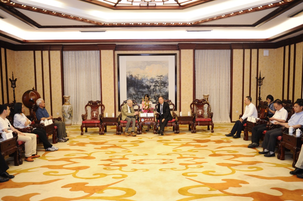 6月8日下午,诺贝尔物理学奖得主、美国伊利诺伊斯大学物理系和材料系安东尼·莱格特教授访问四川大学并受聘为川大名誉教授,校长李言荣在望江校区明德楼贵宾厅会见了来宾。副校长梁斌,学校相关单位负责人参加会见。