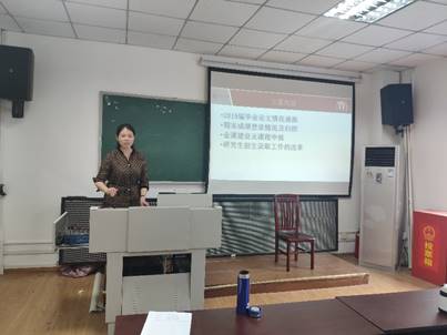 接着,教学副院长林江莉通报了我院春季学期教学工作的运行情况,重点强调了学位论文的质量和试卷的规范性。随后林院长着重介绍了本科课程建设与申报工作,林院长指出每一位高校老师都要把教书育人作为自己的首要任务,打造“升级版”的川大本科教育是学院、学校的重点工作之一,希望任课老师积极申报以Mooc、Spoc课程、通识模块课程、跨专业-贯通式课程、“探究式-小班化”示范课程为代表的金课项目,以此为契机,提升课堂教学质量,建设具有高阶性、创新性和挑战度的高水平课程。