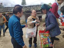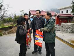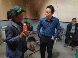 随后扶贫帮扶工作小组分成两组,由尹书记和张书记分别带队走访慰问了我院对口帮扶的14户贫困户。金秋时节秋色宜人,山间蒙了一层薄雾,青山绿水间属于秋日独有的彩林若隐若现,错落而富有色彩及民族特色的民居显得额外好看,村民热情地与大家寒暄。扶贫小组深入到每一户贫困户家中,送去了文具及日常清洁等用品,帮助他们打扫卫生、整理内务,并围绕“两不愁三保障”的脱贫攻坚目标,细致了解了他们近期子女上学、卫生健康、教育医疗保障、“三建四改”、务工务农、种植养殖等情况,宣传党和学校的扶贫方针政策,着重讲解了教育医疗保障制度。交谈中,老乡们表达了对国家、学校、学院帮扶工作的感激之情,也表示对未来更加美好的生活充满信心和期望。帮扶小组反复告诉他们健康和教育的重要性,希望他们一定要重视小孩的教育,并注重环境卫生,保持健康,并鼓励他们克服困难,在各项帮扶政策的帮助下通过勤奋努力创造更美好的生活。