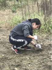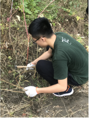 在开心农场上,10余名同学在阳光下埋头苦干、人人争先,有的用手直接拔除,有的拿着耙子进行清理,有的用铁铲清除深根……呈现出一派热火朝天的劳动场景。经过将近两个小时的努力,大面积的杂草不见了,展现在眼前的是整洁又充满希望的土地。