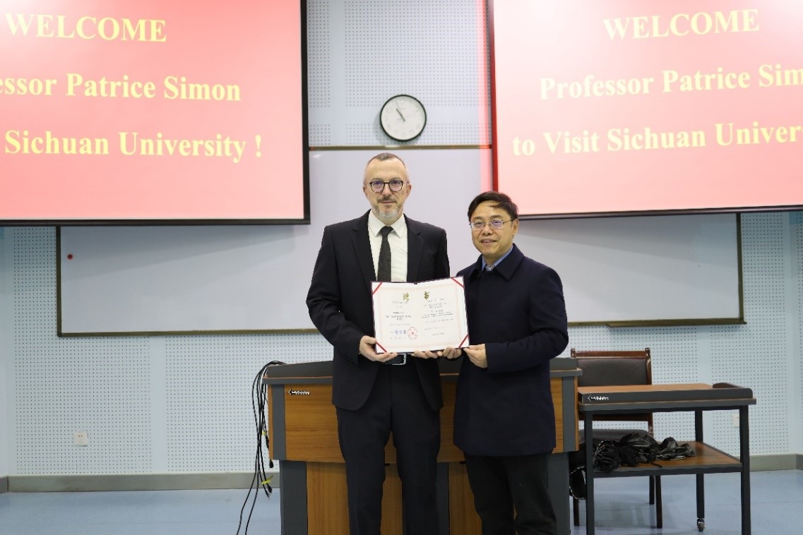 应四川大学材料科学与工程学院邀请,法国科学技术学院院士、欧洲科学院院士,法国图卢兹第三大学杰出教授Patrice Simon于2019年12月4日访问四川大学。Patrice Simon教授为国际电化学储能领域知名学者,在Science、Nature Materials、Nature Energy、Nature Nanotechnology等发表论文两百余篇,引用达五万余次。获法国国家科学研究中心银牌、国际电化学学会Conway奖、法国化学学会Pierre Süe奖等。