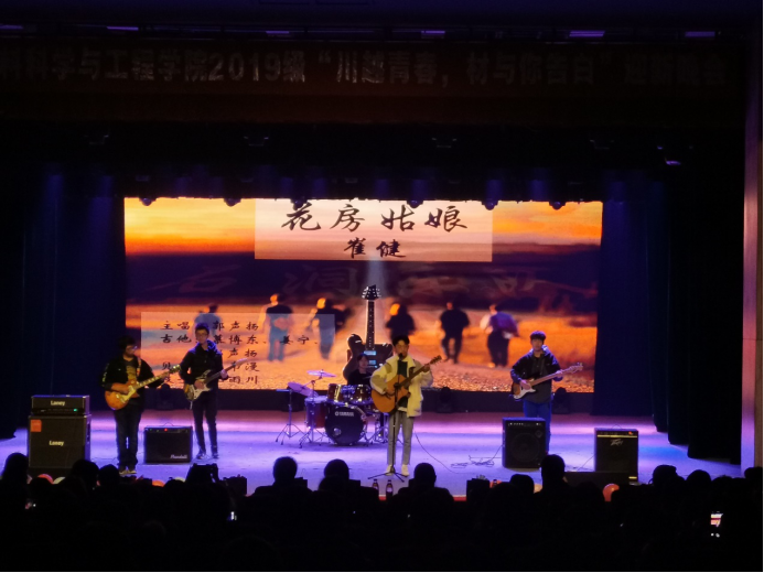 紧接着各种节目轮番登场,异彩纷呈,魅力四射。乐队激情弹唱,演绎经典老歌《花房姑娘》,带来一场听觉盛宴;材料一班带来的《武林外传川大版》引来全场经久不衰的欢呼喝彩;串烧《马克图布》蕴含着演唱者的充沛情感,倾述着"川越青春,材舆你告白”的命中注定;来自学院舞蹈队的舞蹈《Dancing with Luv》动作优美,引人入胜;研究生同学带来的《大鱼》空灵动听,《年少有为》真挚有情;由生医班自编、自导、自演的小品《面试》,生动有趣,也诠释了唯有真材实料才能勇担大任;材料三班刘振海同学独唱《All Of Me》引来全场的欢呼;影子戏《青春时光,我在川大》勾勒了同学们向往的未来川大生活;19级辅导员王静老师、教务员苟倩老师携手19级全体班委带来一曲《明天会更好》,歌声中饱含着铿锵自信和对明天的无限希望,绽放着青春与梦想的光芒。最后由主席团、部长团带来的压轴表演《材与你告白》,将晚会再次推向高潮。