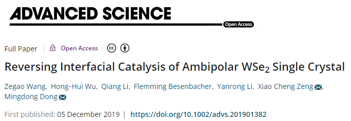 近日,四川大学材料科学与工程学院王泽高特聘研究员与丹麦奥胡斯大学Mingdong Dong教授、美国内布拉斯加大学林肯分校Xiao Cheng Zeng教授合作,在表面催化领域取得重要进展,相关研究成果“Reversing Interfacial Catalysis of Ambipolar WSe2 Single Crystal”以四川大学为第一单位发表在顶级期刊Advanced Science上(影响因子15.804)。