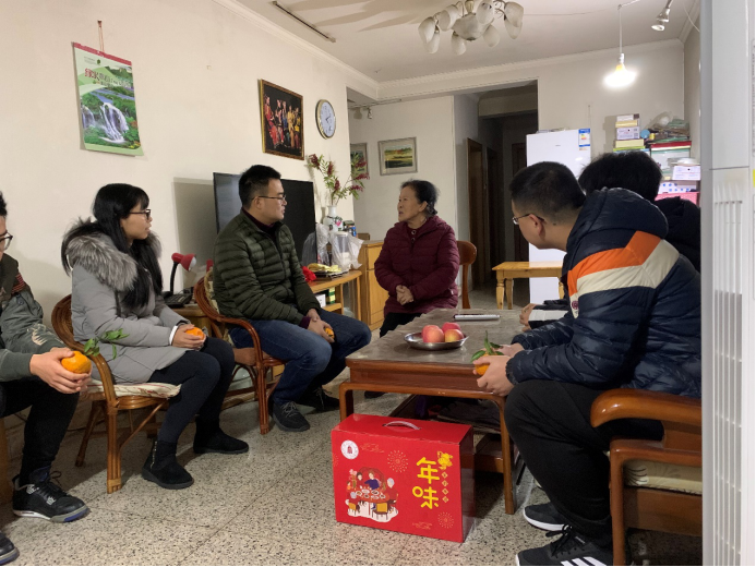 2020年1月2日下午,受尹书记、刘院长的重托,学院团委书记余鹏飞老师率领团委、学生会、研分会、望江本科党支部的主要学生干部分别看望我院五位退休老师,转达学院领导的新年问候,并为退休老师们贴窗花、贴春联、讲述学校发展大事。
