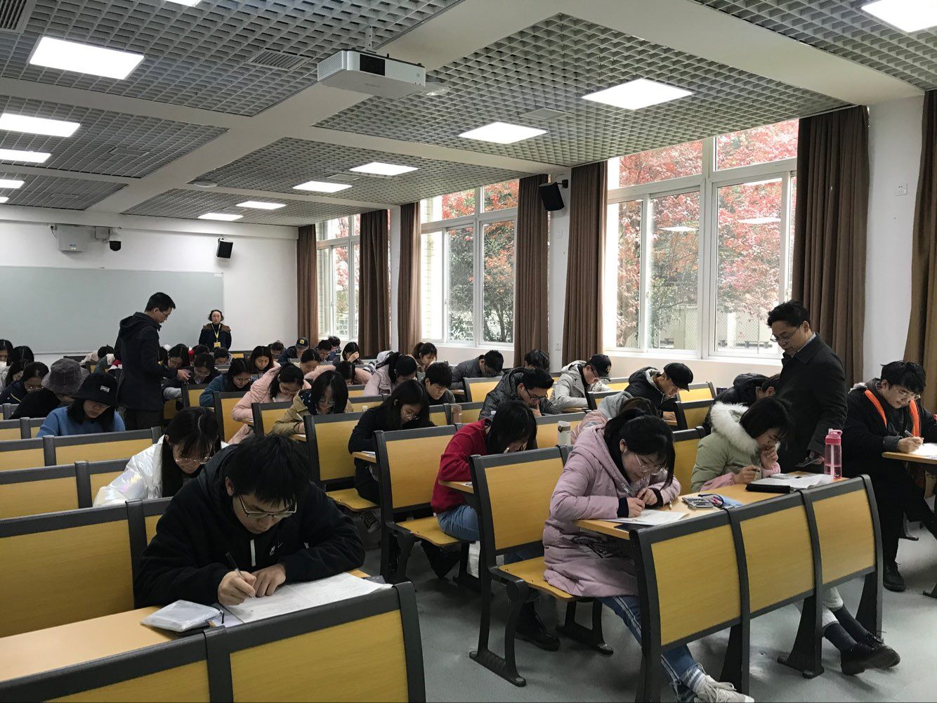 11月04-10日,由学校统一组织,本科全校性公共课程军事理论、数学物理方法、微积分、马克思主义基本原理概论、大学英语、线性代数等科目进行了期末考试。04-09日全天,我院包括系主任和多位教授在内的专职教师、专职博士后共162人次参加了江安校区及望江校区军事理论、微积分、线性代数、思想道德修养与法律基础等100门次课程期末考试的监考,学院党委书记尹光福、院长刘颖、党委副书记张晓满、副院长林江莉、吴家刚,及工会主席武莉莉进行了巡考。