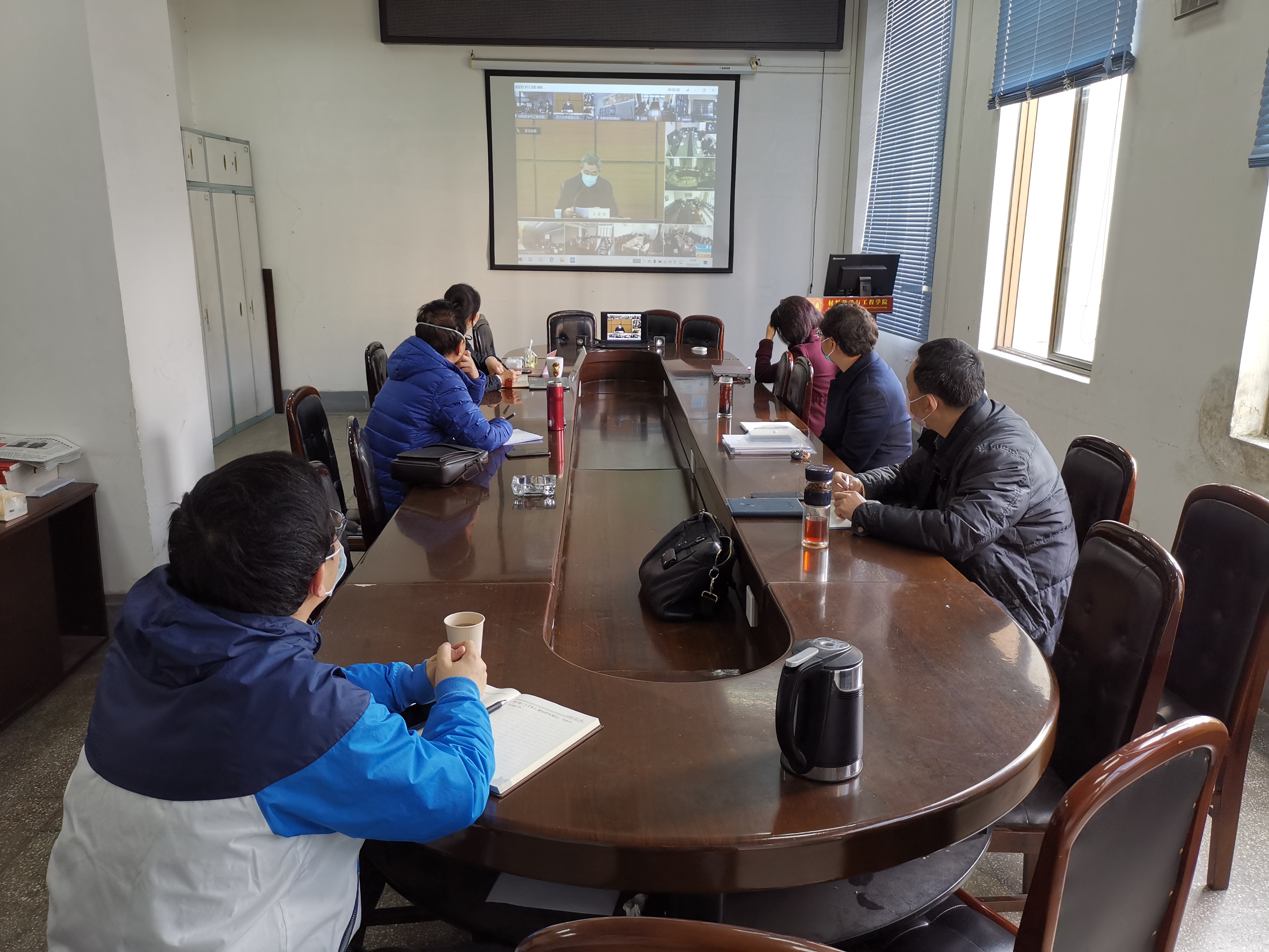 2020年2月21日上午,材料科学与工程学院党委书记尹光福、院长刘颖、党委副书记张晓满、副院长吴家刚、副院长林江莉和院工会主席武莉莉等同志,在材料科学与工程学院会议室参加了四川大学2020年工作布置视频会。