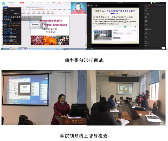 今天,2020年2月24日是四川大学新学期开学的第一天,风和日丽,天气晴朗!在此疫情防控时期,材料科学与工程学院线上教学如期进行。学院党委书记尹光福、院长刘颖、党委副书记张晓满、副院长林江莉、副院长吴家刚、院工会主席武莉莉等,对教师到岗情况、授课情况、学生课堂纪律情况进行线上督导。