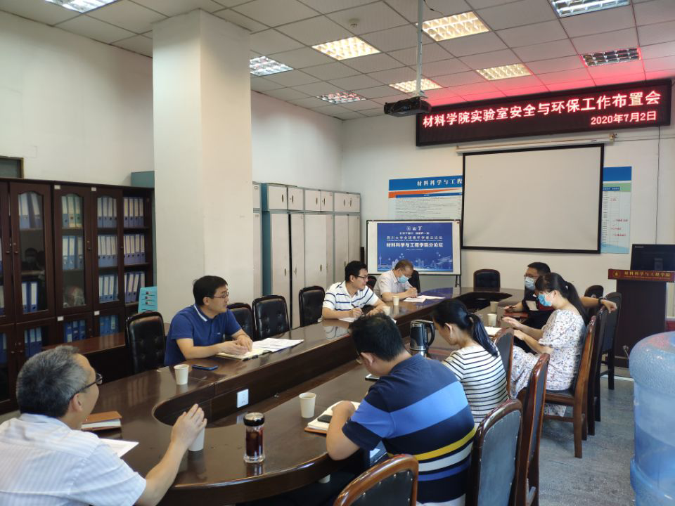 2020年7月2日,材料学院组织召开实验室安全与环保工作会议以及暑假前实验室安全工作布置会,会议由分管副院长吴家刚教授主持,学院教学科研科科长、实验室主任、安全秘书参加会议。会议传达学习了近期学校实验室安全和环保工作,并对学院实验室安全环保工作进行了安排部署。会议强调,各实验室要高度重视实验室安全环保工作,认真落实好学校要求,扎实做好每一项工作,全力确保实验室安全环保。同时,吴家刚副院长强调,在暑假来临之前,让各实验室安全负责人做好安全隐患排查等工作,特别是注意暑期汛期的实验室安全,力保暑期实验室安全稳定运行。会议要求,各实验室主任要将此次会议精神迅速传达各系老师,并督促做好实验室安全与环保工作,全力确保学院各项教学科研工作顺利推进。