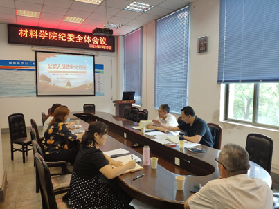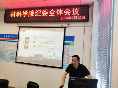 7月10日16:00,材料科学与工程学院召开纪委全体会议,校纪委委员、国有资产管理处处长樊庆文莅临我院指导工作,学院纪委书记张晓满及全体纪委委员参加了此次会议。