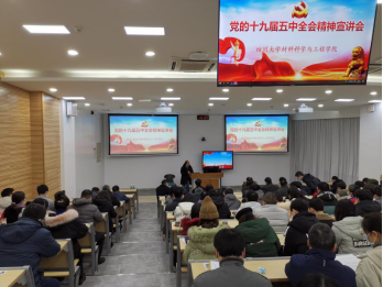 1月7日下午,为深入学习贯彻党的十九届五中全会精神,材料科学与工程学院在基础教学楼C203举行了党的十九届五中全会精神宣讲报告会。会议邀请了学校党委副书记郭勇教授作宣讲报告。学院党政领导、全体教职工与学生党员代表出席了报告会。