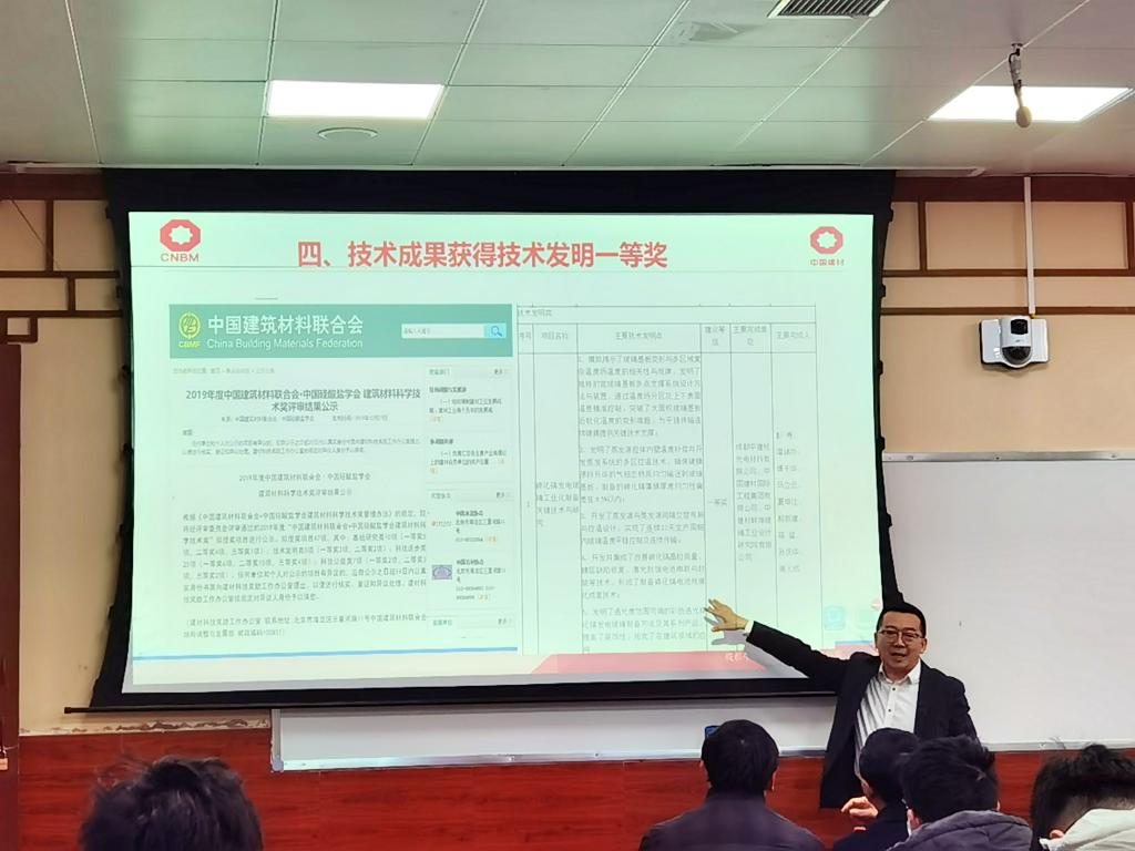 聘任仪式结束后,潘锦功总经理为学院师生作了一场题为《中国建材碲化镉发电玻璃研发与产业化》的学术报告,他介绍了自己的专利成果、研发过程,分享了创业感悟。同时他指出,材料科学与工程学院办学特点和优势突出,具有强大的发展后劲和潜力。作为客座教授,潘锦功总经理表示此次聘任既是一份荣誉也是一份责任,他将竭尽所能、履行职责,结合自身的学术专长,发挥自身的行业影响力助力材料学院和四川大学的发展。