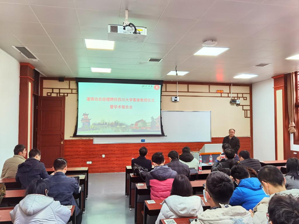 1月15日下午,四川大学材料科学与工程学院客座教授聘任仪式在四川大学东区第二教学楼101教室隆重举行。政协成都市双流区委员会委员、成都中建材光电材料有限公司总经理潘锦功先生受聘学校客座教授。学校党委副书记郭勇教授、学院党委书记蒋青教授、院长刘颖教授、党委副书记张晓满教授、副院长吴家刚教授、院长助理叶金文教授、朱小红教授、成都中建材光电材料有限公司相关负责人出席授聘仪式。仪式由党委书记蒋青教授主持。