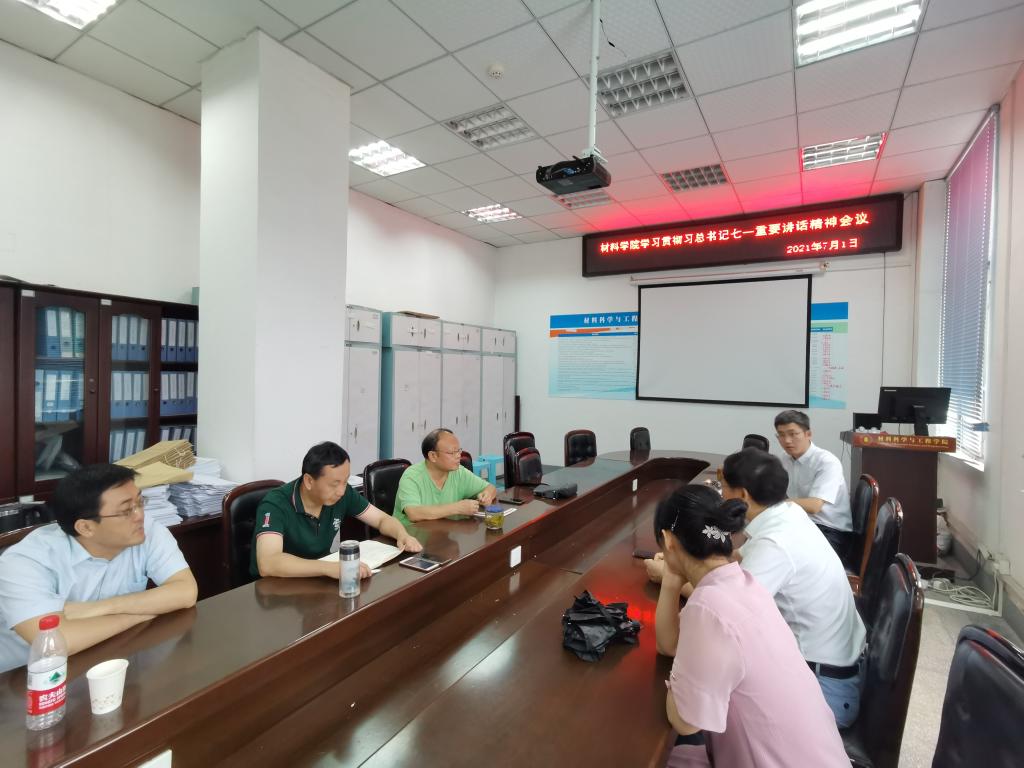 7月1日早上七时五十分,材料科学与工程学院领导班子、全体行政、辅导员在学院会议室集中观看了庆祝中国共产党成立100周年大会,大会直播结束后,学院党委理论中心组召开学习贯彻习近平总书记七一重要讲话精神会议,学院党委书记蒋青、院长刘颖、党委副书记张晓满、副院长吴家刚、院长助理叶金文和党委中心组成员参加会议。