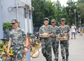 7月14日,学院党委副书记张晓满教授、学生科科长王娇老师代表学院领导来到训练场慰问全体同学。张书记指出:“大学生集中军训是全民国防教育的重要组成部分,也是学校开展国防教育和培养高素质人才的重要形式。希望同学们在军训的过程中吃苦耐劳,不畏艰难,规范作息习惯和生活规律,强化纪律观念和时间观念,提升团队精神和整体意识,进一步培养正直勇敢、乐于担当的优良作风!”