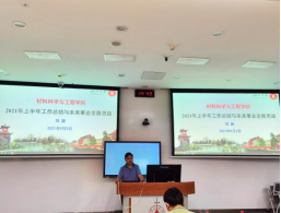 院长刘颖总结了上半年学院党建、学科建设、人才引进、科研、教育教学改革等工作成果,根据学校“十四五”事业发展规划,结合材料学院实际,明确了学院下半年的发展目标、工作思路与重点举措。