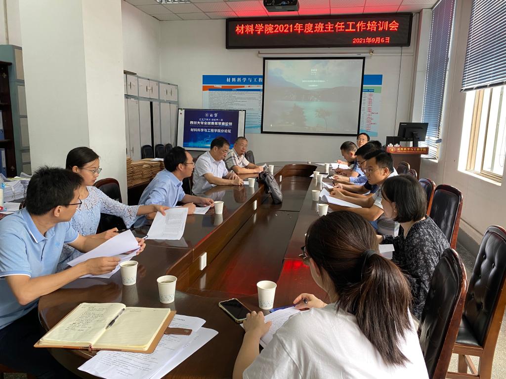 为贯彻全国高校思想政治工作会议精神,更好地发挥教师对学生发展、成人成才的指导作用,9月6日下午3:00,材料科学与工程学院2021级新生班主任工作会在学院会议室召开,会议由学院院长助理叶金文主持,2018级班主任朱建国,2017级班主任、2020年度优秀班主任曾广根,2021级新生班主任张和民、谭超、陈君泽、王璐、罗江水、周玉凤、郑婷、邢洁、赵江琦、武开鹏,教务员苟倩参加了此次会议。