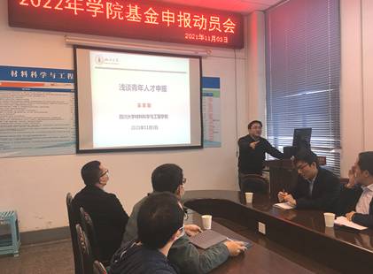 为做好2022年度国家自然科学基金申报工作,进一步提升项目申请率和项目申报书质量,我院于2021年11月03日在望江校区第一理科楼会议室举行了国家自然科学基金申报动员会。学院拟申报教师参加了会议,会议由吴家刚副院长主持。