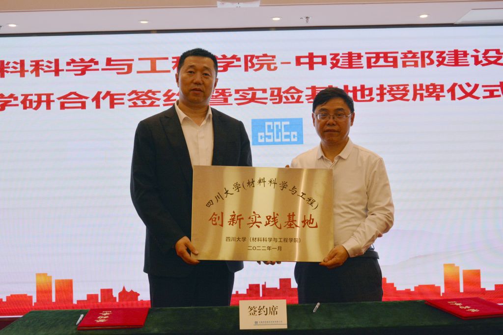 1月17日,四川大学材料科学与工程学院与中建西部建设西南公司(以下简称“西南公司”)举办了产学研合作签约仪式。四川大学材料科学与工程学院院长刘颖、党委副书记兼纪委书记张晓满;西南公司党委副书记、总经理徐志飞,党委副书记、纪委书记张利锋出席。