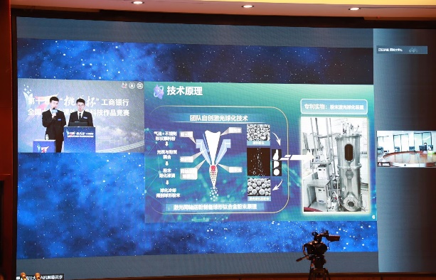 我院参赛团队揭榜攀钢集团研究院挂榜的选题“高效率球形钛合金粉末制备新原理新工艺研究”,对标企业提出的高品质钛粉粉末收得率、球形度、流动性等关键参数指标,采用基于激光-同轴送粉制备钛合金粉末的球化制粉新方法,利用高能量激光使不规则粉末瞬间熔化,在表面张力作用下球化冷凝后形成球形粉末,并通过优化工艺参数制备出兼具球形度高、氧增量低、空心粉少、细粉收得率高等特性的高品质球形钛粉。
